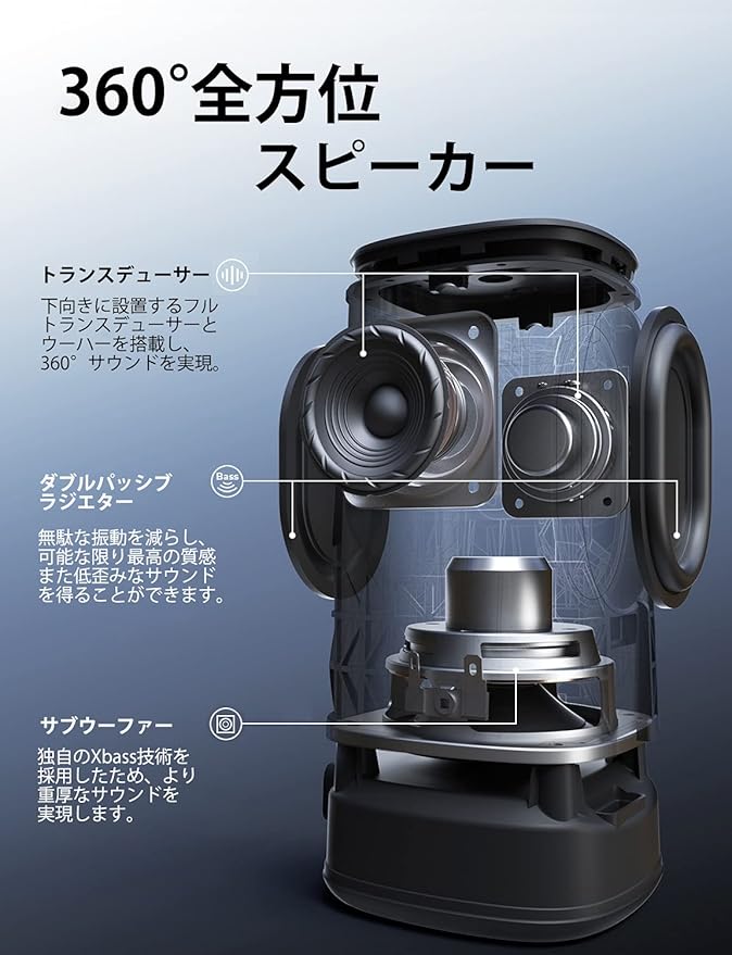 360度。全方位に広がる重低音BASSスピーカー。「Tribit StormBox Pro」Bluetoothスピーカーです。
